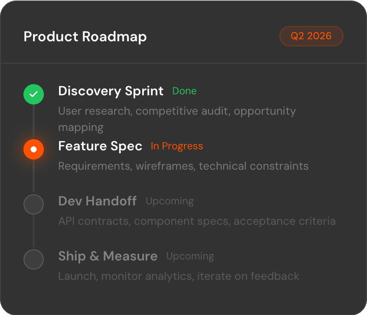 I embed as your Head of Product. Roadmap, discovery, sprint management, team coordination, and shipping. I treat your product like it's mine.